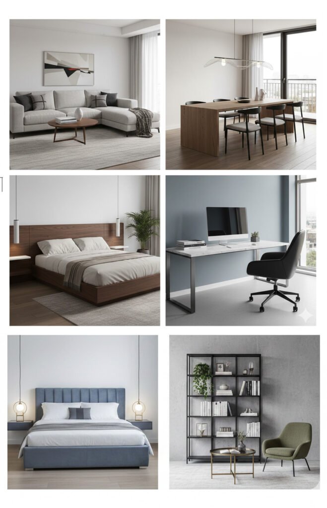 Finishes Lighting furniture Doors Restaurant equipment electronics kitchenware bedrooms Various gifts Camping equipment beauty tools games